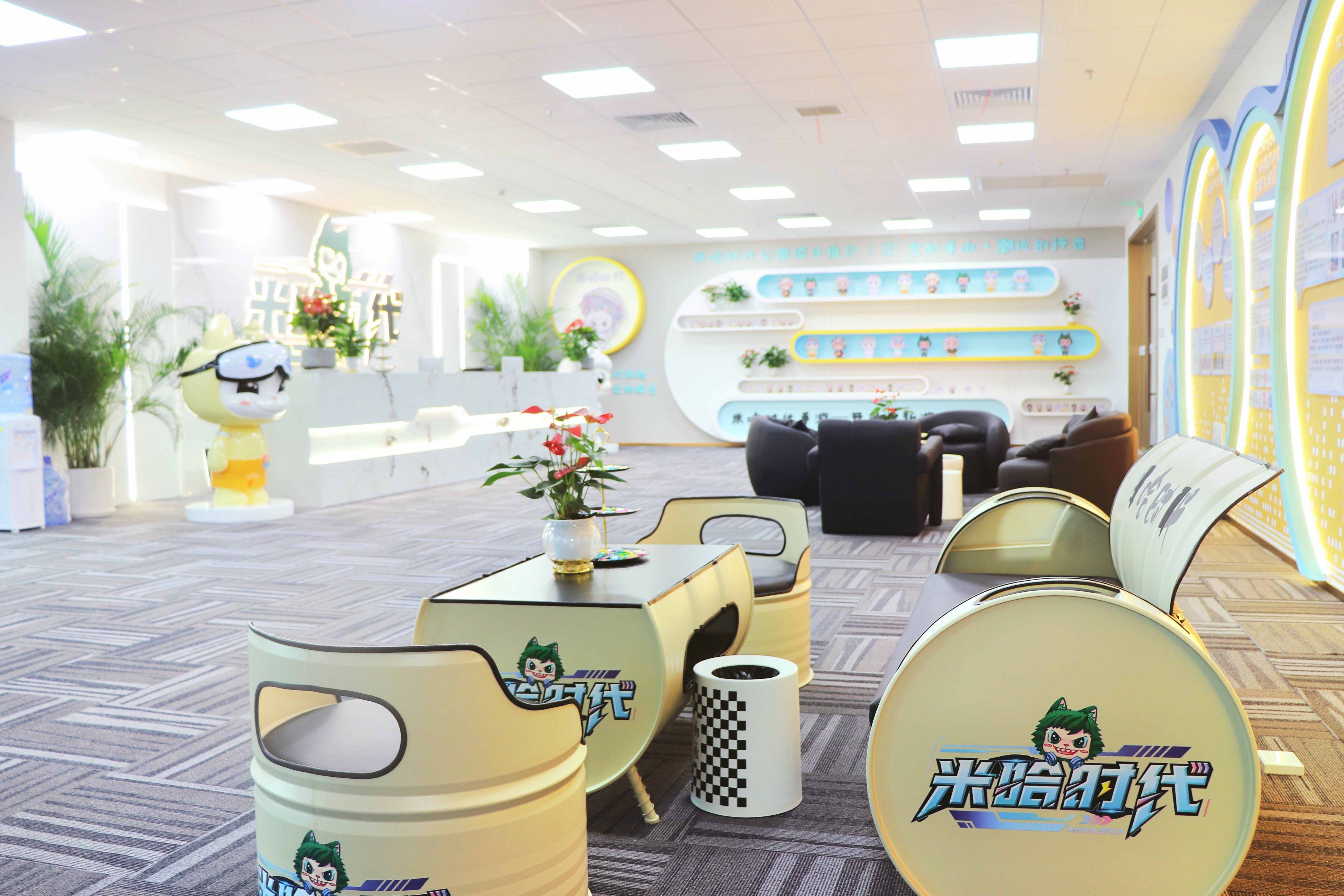 大厅一侧,巨幅海报展示着“米哈时代公司项目推介”的视觉蓝图。这是公司即将推出的手游力作——《米哈时代》,一款融合探索、文化与策略的开放世界游戏。项目展板上,“米哈时代手游一开启”的字样熠熠生辉,预示着一段虚拟与真实交织的旅程即将拉开序幕。